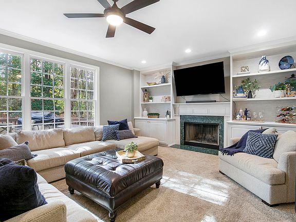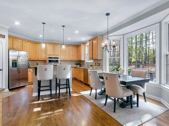 Spectacular home in the highly sought-after PRESTON VILLAGE! This stunning brick front home lives large! Bright, open floorplan on .45 acre wooded, private lot! Grand, vaulted foyer. Updated kitchen with stainless appliances & gas cooktop. Refinished hardwoods. New paint & light fixtures. Large family room offers custom built in bookcases with stunning grass cloth accents. Large, primary ensuite, his/hers closets & large spa bath! 4 Bedrooms & bonus on 2nd floor. Large laundry room. Enjoy the fall evenings on the fabulous stone patio with fire pit. 3 Car Garage! HVAC (1st floor) - 2022, 2nd floor- 2024. Roof - 2021. Water heater-2021. Community pool, pavilion, lake for fishing & large playground. Google / ATT Fiber available. Enjoy the ease of being within minutes to shopping, fine dining, major highways, airport, RTP, parks and much more. Don't miss the opportunity to own this exceptional property in a premier location!