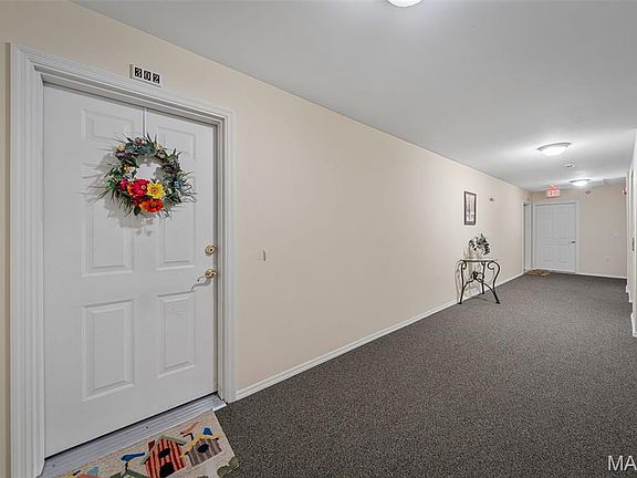 Welcome to this beautifully maintained 1 owner condo offering an open floor plan, convenience, and thoughtful upgrades throughout! Featuring newer windows (2012) and a newer hot water heater (2021) furnace (2013) and AC (2016)....this home is move-in ready! Enjoy wood flooring in the living room and bedrooms, all enhanced with ceiling fans and closet organizers. The spacious living room boasts a vaulted ceiling with a charming plant shelf, while the large eat-in kitchen opens to a composite deck with dual access from both the kitchen and the vaulted master suite. The master includes a walk-in closet with an organizer system, a Jacuzzi tub, and a walk-in shower with a built-in seat. The in-unit laundry room includes a washer/dryer set, utility sink, and cabinets for added storage. Additional highlights include handicap-width interior doors, a dedicated storage unit in the basement, one covered parking space, and a secure building with elevator access. Prime location near shopping, dining, and parks all in the award-winning Lindbergh School District. This condo offers low-maintenance living at its best—don’t miss your opportunity to call it home!