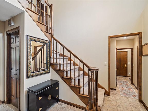 Charm and Character + Beautifully Wooded Lot! Updated and well maintained 2 Story nestled on a cul-de-sac with walking trails just outside your door! The main floor features a bright formal living or dining room, You will love the remodeled kitchen with raised panel cabinets, granite, wood floors, tile backsplash, slate appliances, double ovens, pull out drawers +++ The main floor also features a cozy family room w/ exposed wood beams and a gas fireplace and patio door that bring you the oasis of your wooded backyard! Want a place to escape the bugs by enjoy the outdoors - relax in your screen porch! Upstairs you will find the large primary bedroom w/ walk-in closet and the ensuite bathroom. This 3/4 bathroom features double sinks, tile floors and tile surround in the shower. Upstairs you will also find a full bath and 2 other nice size bedrooms. The finished lower level features a large family room complete w/ a wood burning fireplace and wet bar. There is also a rec area, the 4th bedroom (currently a craft room), anther full bath and lots of storage! The O'sized HEATED garage has perfect area for workshop or for extra storage or to store that longer boat! Enjoy the summer days on the double deck/patio O'looking the nicely landscaped wooded yard. Don't miss the bonfire pit! You will love the miles of walking trails just outside your door. Close access to restaurants, shopping and highways! Kids play area with basketball hoops less than 1 block away!