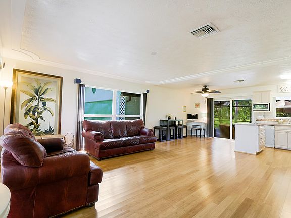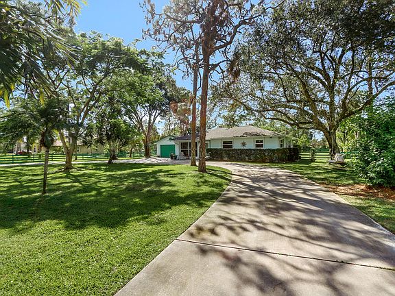 Welcome home to this 3Bd, 2Ba absolutely adorable property. With oversize picture windows in the living room an open concept kitchen and a large screened in back patio. There is bamboo wood flooring throughout the home. This property sits on 1.25 acres of beautiful lavish greens and so much more. The 2 car garage is semi-attached. This location is close to SR7-441 and easily accessible to Okeechobee Blvd. and Royal Palm Beach. Located next to Shoppes, Activities and Schools