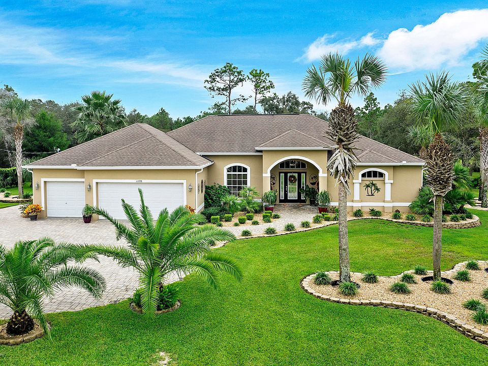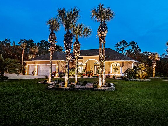 Active under Contract...taking back up offers. Spectacular 4/3/3 Pool home sits on 1.8 acres of lush, manicured property. Beautifully lit, landscaped. This home boasts 2537 of spacious living area with newly upgraded kitchen and bathroom custom cabinets, QUARTZ counter tops. Kitchen features a perfect area for your own personal coffee bar. Has under cabinet lighting that turns on with the wave of your hand. Enjoy your own tropical oasis by relaxing in the heated pool with water feature. Or take a stroll along the pavered walkways to the fire pit. or the additional 2 car detached garage with electric and cabinets w/ granite counter tops. The owner has made this a true gem of a home. This home is a must see...there are too many extras to list. I have attached the detail sheet. Make an appointment today!