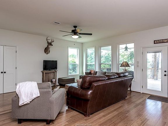 Beautiful custom built 2 bedroom 2.5 bath home plus two bunk rooms on lovely Camp Creek Lake. This lake front property features 9 ft. ceilings, bamboo floors, large open kitchen/dining area & living room with a stunning view of the lake. Spacious kitchen includes granite counters, island, gas stove, built-in ice maker & custom hickory cabinets. Two master suites offer private baths, granite countertops & tiled showers. The two bunk rooms include custom built-in bunk beds & beautiful barn style doors. Energy features include SEER 16 two stage heat pumps, vinyl pane Low E windows & spray foam insulation. Other amenities include 20X30 boat storage, enormous covered patio & 60 ft fishing pier.