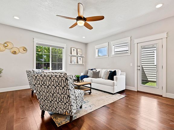 Low maintenance Tresidio built former model home w/upgrades galore! Home is nestled on quiet street in desirable Hazelwood Village & sits steps from community pool, clubhouse & playground. Community offers 2 pools, 1 acre park, walking paths, community garden & 1 acre dog park! Interior features sunny kitchen with custom white cabinets, SS appliances, gas range, granite countertops, butcher block island w/breakfast bar & West Elm Pendant lighting. Spacious main level primary suite includes spa-like soaker tub, walk-in shower, dual vanities & large walk-in closet. Home boasts ample natural lighting, elevated ceilings, custom built-in shelving, is plumbed for central vac, Smart Home equipped w/ring doorbell & Ecobee thermostat (both included), hardwired for high-speed internet & whole home surround sound. 2nd level includes large bonus room, 2 spacious bedrooms & a full bath. Garage includes 3 industrial overhead shelving units & keyless entry. Cozy side yard is ZERO maintenance w/concrete patio & astroturf.