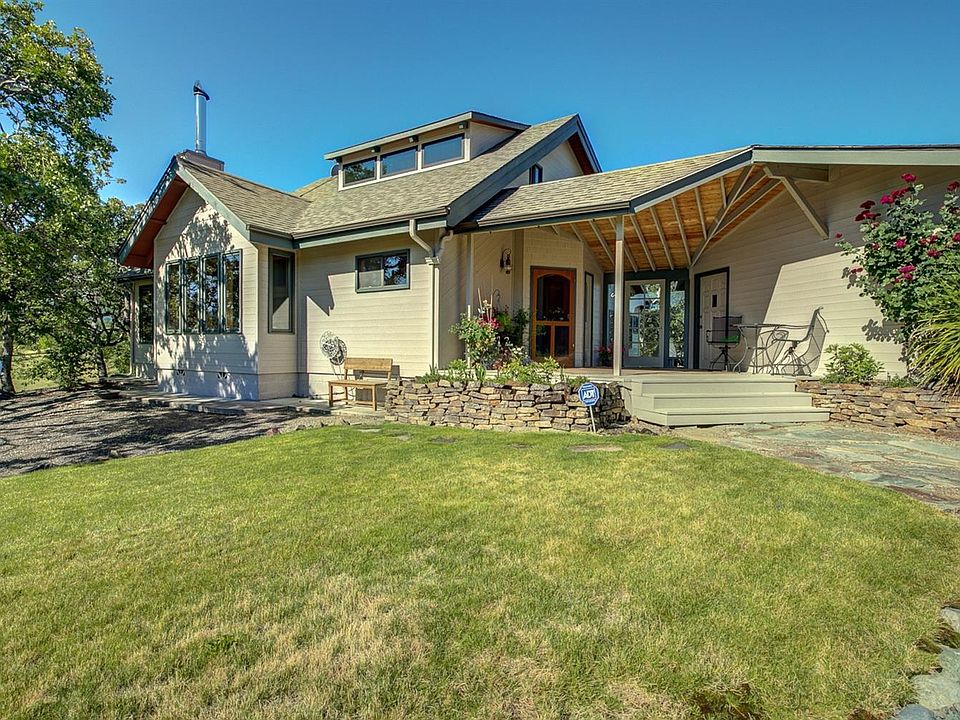 Private setting for this artistically inspired home in upscale rural Ashland community. Near Emigrant Lake & minutes to town. Wonderful pasture area, rolling hills & gorgeous views. This cedar home is stylish & comfortable with hardwood floors, wood vaulted ceilings, panoramic views from large windows and tons of natural light. Open floor plan for the main living areas, spacious kitchen with marble counters plus den/office with built-in bookcases. The vaulted dining room is an actual sunroom with views. The dining room has French doors that lead to a patio area. The main level master has gorgeous views & French doors to private arbor covered patio plus an ensuite bathroom with a jetted tub, granite surround on tub & shower, built-ins & walk-in closet. Upper level has 2 bedrooms, full bath plus balcony. Variety of fruit trees and enclosed garden area with deer proof fencing. TID supplied by the Corp Ranch Assoc. 2 acres of irrigation. 2 wells plus 2000 gal holding tank.