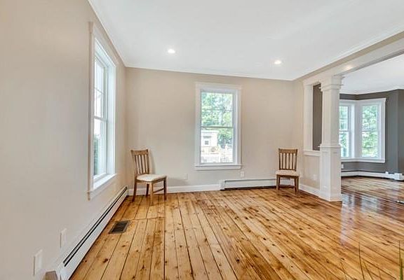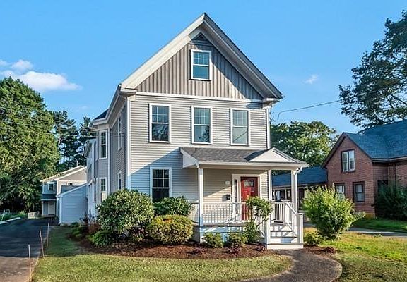 Stunning restoration and addition to Natick Center antique with attention to detail including stained glass, mahogany railings, pine and maple floors. Very high ceilings with tons of light. Leathered granite counters, gas fireplace, and decorative trim. Private fenced backyard and patio, inviting front porch and spacious covered side porch. Luxurious master suite with walk-in closet and master bath and french doors to its own sunroom. Total of 5 bedrooms on 2nd and 3rd floors. First floor laundry and mudroom, attached oversize two car garage. Townhome with feel of single family; only party wall is between garages. Walk to town (just over half a mile), schools, pond and commuter rail.