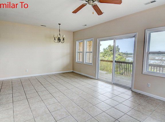Your own beach escape, with fantastic views of the water, jaw dropping sunsets, and peaceful serenity during your time on Topsail. This great 5 bedroom 4 bathroom duplex has amazing views of the Surf City Sound, Sunsets, and Swing Bridge of Topsail Island. This quiet and private community is also located close to the center of Surf City making a pleasant bike ride to all the shops and restaurants. The first level has three bedrooms and two bathrooms, including one master bed/bath. The second level holds the living area, dining area and kitchen, as well as a secluded bedroom & bath which makes it close to a master set up. The third level has a master bed/bath with views of the ocean. The kitchen features stainless steel appliances and granite countertops. Full size washer and dryer hook ups
