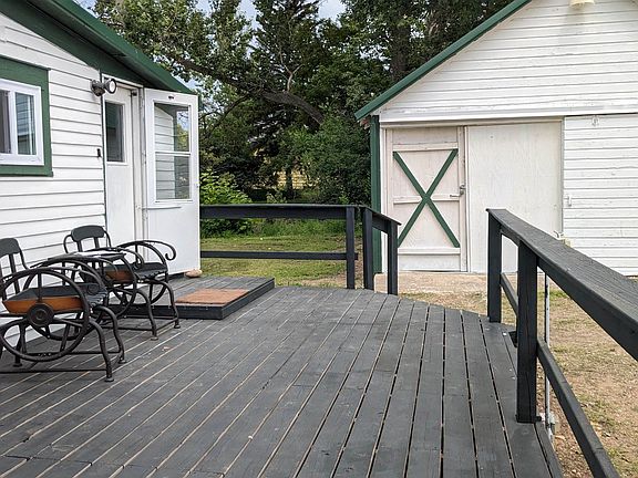 Step into this delightful home and be captivated by the perfect combination of of timeless charm and small-town appeal. The sturdy and low-maintenance metal roof and new fresh coat of paint ensures longevity and protection for years to come, saving you time and money on repairs. Rest easy knowing that your loved ones and belongings are safeguarded with the installed video security system. Whether you're at work or taking a weekend getaway, you can have peace of mind knowing that your home is protected. As you explore the property, you'll be delighted to discover an oversized single car garage with a workshop area. This versatile space is perfect for indulging in your hobbies, whether it's woodworking, automotive projects, or creating your own masterpiece. The generous space of 2 city lots offers plenty of room to expand or simply revel in the privacy and tranquility it provides. It's perfect as an escape from the bustling city while still enjoying access to urban conveniences. Think of spending sunny afternoons on your porch, enjoying a cup of coffee or hosting gatherings with friends and family in the spacious yard. Let your imagination soar as you envision transforming this outdoor space into your personal oasis. The heart of this home lies in the inviting living room, from which the layout seamlessly flows to the two bedrooms, while the kitchen with a dining peninsula is perfect for preparing meals and enjoying casual dining. Don't miss out on this incredible opportunity to own a home that truly has it all. Whether you're starting a family or craving a serene retreat, this property in Drake, ND is the perfect place to call home. Schedule a showing today and immerse yourself in the possibilities this house has to offer. House is being sold AS-IS, washer and dryer are included.