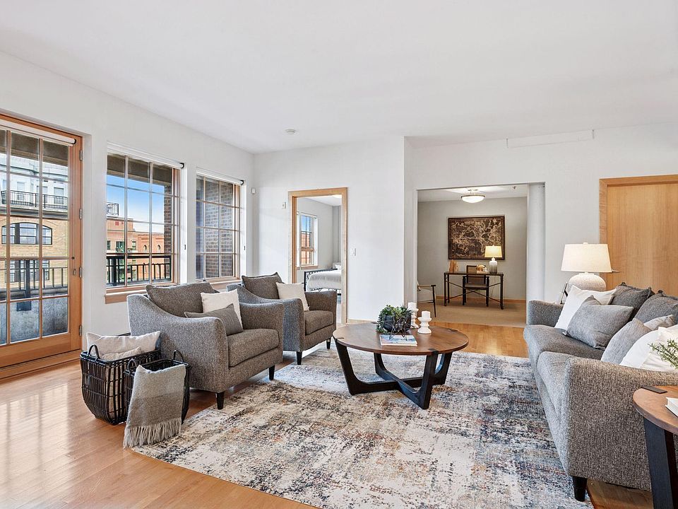 Welcome to this beautifully designed 2 bedroom/1+ den, 2 bath residence in the premier Rock Island Lofts — perfectly positioned in the heart of the vibrant North Loop. This open and inviting home features gleaming hardwood floors, stone countertops, and stainless steel appliances, blending modern comfort with timeless style.