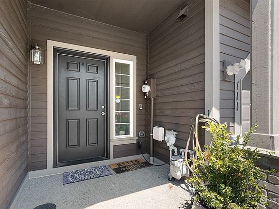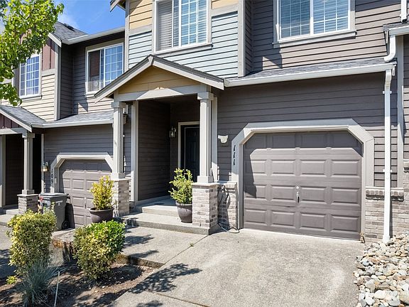 Welcome to this lovely home in Lakeland Hills! Spacious main level with a cozy fireplace and ample living space. Stunning kitchen with chic counters, subway backsplash, and timeless two-tone cabinets. Slider to back patio for BBQs or unwinding with private greenspace backdrop. Large Primary Suite with 5-piece bath and walk-in closet. 2 generous bedrooms, large laundry room, and full bath on upper level. Garage space, low-maintenance landscaping, and ideal commuting location. Enjoy the great amenities of Lakeland Town Center for a perfect work/life balance!