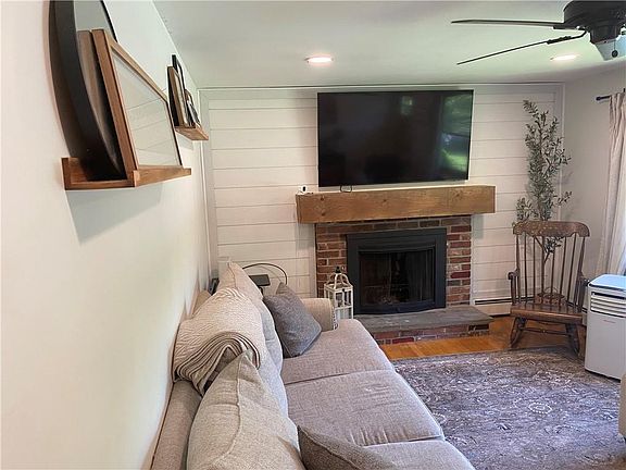 Solid ranch in the heart of Cumberland. This 3 bed one bath home features an eat-in kitchen, new heating system, completely renovated bathroom, newer appliances and partially finished walk-out basement. Private back yard is private and fully fenced. Bedrooms and living room have hardwood floors. Wood-burning fireplace is the centerpiece of the updated, sunny living room. Easy access to highways, shopping, dining and public places like the Cumberland Monestary and Diamond Hill Park.