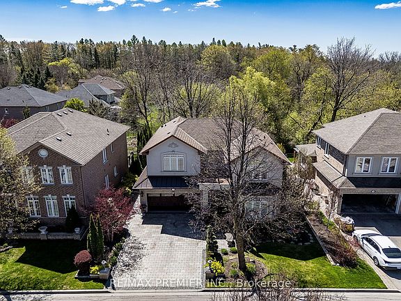 Nestled on a Ravine Lot in one of the most desirable areas of Woodbridge! This stunning home, situated on a family-friendly court, offers a blend of renaissance elegance and natural beauty, surrounded by the picturesque Boyd Park, perfect for nature lovers, and the Burton trail, ideal for fitness enthusiasts. This move-in ready residence boasts numerous upgrades that truly enhance its appeal. Highlights include: (1) Motion-sensored entrance lighting; (2) Tumbled stone driveway and walkway; (3) Oversized entrance door; (4) Professionally insulated garage with porcelain tiled flooring and a mezzanine (5) Functional main floor bedroom with roughed-in bath. An inviting main floor features pot lights and gleaming hardwood flooring, complemented by built-in closet shelving. The formal dining/living room, adorned with crown molding and 2 large windows, flows seamlessly into the custom-designed servery/coffee nook. The classic kitchen is equipped with upgraded s/s appliances, pullout drawers, and a cozy eat-in area that opens to a newly constructed heated concrete patio, featuring an outdoor kitchen with a granite counter, roughed-in bbq area and under-mount s/s sink - an entertainer's delight! The main floor also includes a versatile bedroom with a bath rough-in, perfect for in-laws or a nanny. Ascend the stunning floating steps to find the spacious third bedroom, complete with double doors opening to a Juliette balcony overlooking the vaulted cathedral ceilings in the Great Room. The primary bedroom offers dual closets and a luxurious 6-piece ensuite, all with serene views of the forest. The second and third bedrooms feature room-darkening shades, while the primary bedroom boasts motorized blinds for added convenience. Walking distance to the Al Palladini Community Centre, convenient bus stops to prestigious schools like St. Michael's College, Villanova, and Della Salle, as well as nearby shops, transit, and beautiful nature trails.
