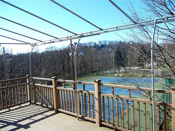 The "WOW Factor" home with custom upgrades everywhere on this Cul-De-Sac! Starting with the Finished Game Room that has a Wine Room, Wet Bar - Complete with Convection Oven, Dishwasher/Refrigerator, Media area, 20 x 19 Gym, Spa-Like Walk-in-shower (Urinal too!). Poker Area/Dining, Custom arched Gas Fireplace, 5th Bedrm/Office potential off Game Room. Walk-Out Basement w/Patio and view of the Tennis Courts! NEW heating and A/C system & NEW Pella Windows. Custom "Grapevine" mortar joints. Gleaming hardwood floors. Cathedral ceilings in Family Room w/Gas Fireplace. 1st Floor Master Bedroom w/Master Shower Suite - Complete with "Walk-In" shower, Jet Tub, Double Sink Vanity & 2 Walk-in-closets. Upstairs Loft/Den/Guest Room off kitchen. Jack & Jill Bathrooms and "Walk-In closets" within "Walk-In closets" that keep on going. Minutes from the 376 parkway, and only 12 Minutes to Downtown Pittsburgh. Home Warranty is included!