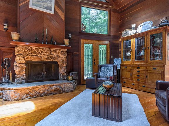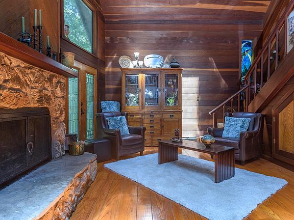 This is it !!!! Full time living or a weekend getaway, this is Tahoe living on the peninsula ! Just shy of 3.5 usable acres, nestled in a serene magnificent mature redwood setting, this 2 bedroom 2 bath well built home boasts striking features of quality craftsmanship woodworking throughout w/stained glass. A main room of living and dining, vaulted ceilings with overhead light/fans, stone fireplace, picture windows, and hardwood floors. Both copper counter and sink accent the kitchen. Large pantry, laundry with counter top and attached garage access. Upper master features sunlit skylights, wood-stove, office nook, and a forest view deck. Soak in your bath while taking in a peaceful view of the redwoods. Well cared for landscaping, with a wood deck, and a brick patio with a free standing wood-stove, completes the scene for outdoor entertaining. Work-out or yoga in the separate studio. Enjoy natures' sounds of this tranquil and unique property.