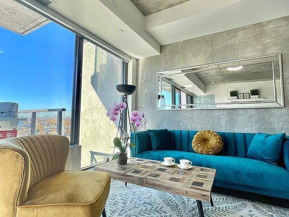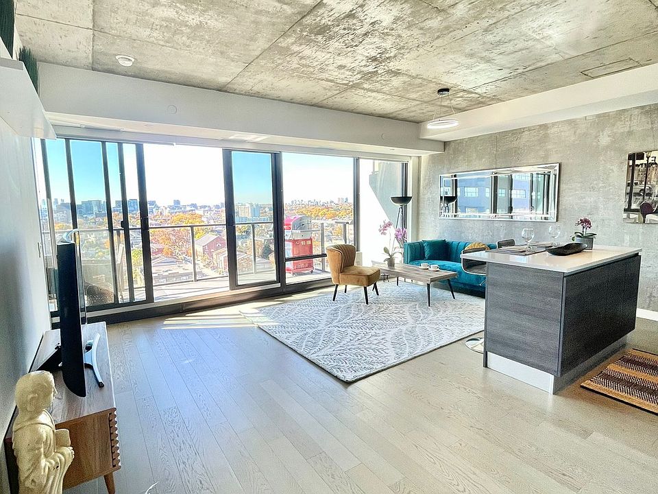 Welcome to your spacious and modern, super comfortable loft. Unobstructed views of 12th floor. Perfect layout! Large den can serve as 2nd bedroom, with doors. Trendy exposed concrete 9 ft ceilings and hardwood floors. Breakfast bar with stone counters and gorgeous floor to ceiling windows throughout all West side of the loft - just in case you love watching stunning sunsets...whether from inside or from outside - generous 116sq ft balcony - perfect for entertaining and with gas hook up for bbq. Custom roller blinds included - the loft is drenched in light ! Steps to restaurants, cafes and nightlife of King West and Queen and financial district of Toronto. Must be seen !