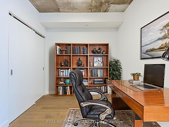 Welcome to OneEleven Condos, where city life and community vibes blend in seamlessly. If you're looking for space, convenience, storage, and an unbeatable location in one of Toronto's best buildings, this bright, freshly painted unit is perfect for you. The unit spans over 700 square feet and includes a large balcony, ideal for your morning coffee or evening wind downs. The open-concept kitchen features a gas stovetop, full-sized appliances, ample cabinets, and generous counter space, ideal for cooking and entertaining. Exposed concrete and high ceilings with floor to ceiling windows give this 14th-floor unit a soft-loft vibe. The large den easily doubles as a guest bedroom, home office, or your creative corner. Both the bedroom and den include large closets but if that isn't enough storage for you, the unit comes with a storage locker. It doesn't get much better than living at OneEleven Condos. Walk to all your favourites: STACKT Market, Trinity Bellwoods, WaterWorks, The Well, Farm Boy, YMCA, and more. Whether you drive or take public transportation, the location is incredibly convenient. The King Street and Bathurst streetcars are right at your doorstep, and Gardiner & DVP are just a short drive away. A parking spot is included for added convenience. If you want the best of King West living, without the noise and commotion, you need to book your showing today!