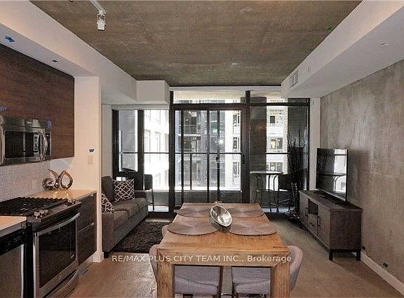 This fully furnished 1-bedroom, 1-bathroom condo is move-in ready and offers a comfortable and stylish living experience in one of Toronto's most dynamic neighbourhoods. Featuring 9-foot ceilings and a spacious 70-square-foot balcony, the suite provides a functional layout with plenty of room to relax or entertain. The bright primary bedroom offers a peaceful retreat, while the open living area leads directly to the private balcony. Ideally located just steps from shops, restaurants, bars, banks, and the vibrant Queen and King West communities, you will enjoy unmatched convenience and walkability. Easy access to streetcars and nearby subway stations makes commuting simple.