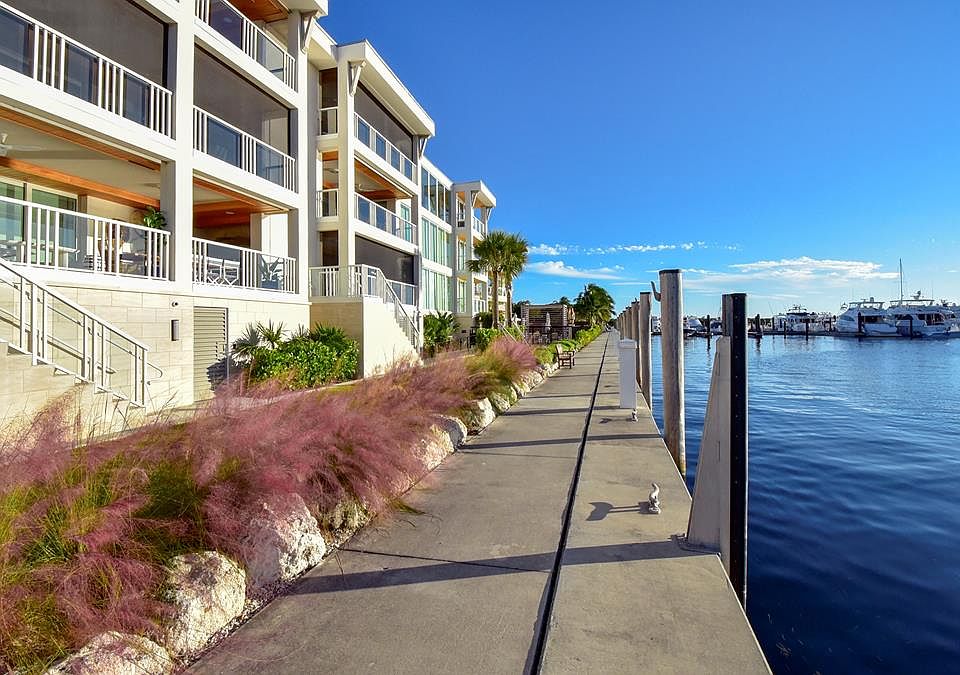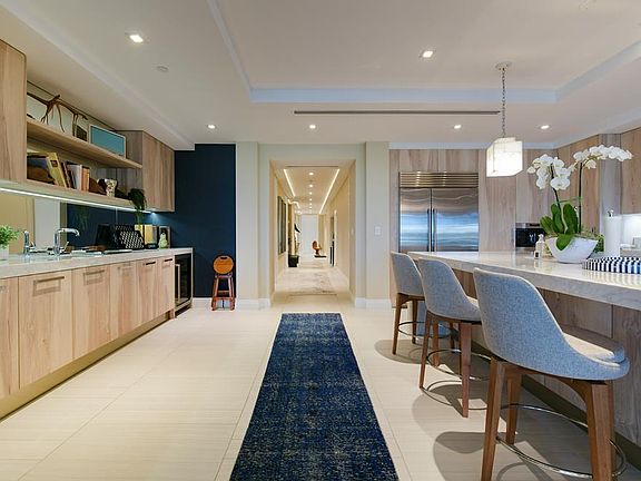 This 3,650 a/c sq. ft. second floor residence features four bedrooms, four full and one half baths. Perfectly positioned steps away from the sea wall. The contemporary kitchen is designed with Italian cabinetry by MiaCucina, stone countertops, Sub-Zero and Wolf appliances. Enjoy an integrated espresso/cappuccino maker bar area with Sub-Zero wine coolers. The master bath features double vanities, separate water closet and a deep soaking tub. Large walk-in closets provide ample space in the master bedroom. Entertain guests on the 656 sq. ft. terrace that features a summer kitchen, sink along with waterfront views. Roll-down sunshades provide privacy and protection. This condominium is complete with Smart Home technology and is pre-wired for high-speed internet access and Wi-Fi. For added convenience the laundry room houses a full-sized washer and dryer. As you enter the covered, controlled access parking garage you will find two car parking spaces and one golf cart space is designated per residence. Electrical vehicle charging stations can also be found at each car parking space. Residents and guest of 121 Marina can also take advantage of first-class amenities such as 750' marina frontage with 10 boat slips, junior Olympic pool with lap lane, fitness center and Beacon House!