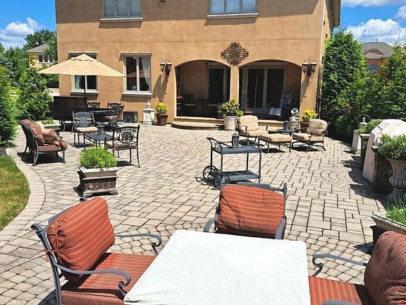 Welcome to this absolutely stunning and elegant Tuscan style home in the 55+ active adult Community of Villagio in South Brunswick NJ. Note, one resident must be 55, the others can be 19+. Look no further, this home has it all and so much more! This home boasts sophistication, elegance, warmth and the largest outdoor brick paver patio of 1700 sq ft you will find in the community. Perfect for parties, family entertaining, bbq's and relaxing in total privacy, enclosed with professional trees and landscaping all around. Upgrades to this home are in excess of $200,000. Wood floors all throughout the 1st floor, staircase and 2nd story landing; with carpeting in all second level bedrooms. Live in this great, maintenance free community (lawn maintenance and snow removal included) with so many other amenities, such as a 2 story Clubhouse containing an outdoor pool, fitness center, billiards room, library, game room, kitchen. Community also has tennis courts and bocce ball. All offered for a very reasonable monthly HOA fee. Enter the home through the double front doors into the large, two story open foyer which leads into the stunning two story living room with floor to ceiling windows, a double sided fireplace and two elegant archway openings leading to the open, huge kitchen and family room. All features including the lighting fixtures, chandeliers (including lift for foyer and LR), window treatments are all included and are of the highest quality in sophistication. The kitchen contains granite counter tops, a large center island with breakfast bar seating, 42" cabinetry with under cabinet lighting and an oversized pantry. Entertaining is made easy flowing into the family room with the 2 sided gas fireplace, providing cozy comfort! The family room leads to the outdoor huge patio, first with overhead cover, ceiling fan and recessed lighting and then to the 1700 sq ft custom brick patio with hard and landscaping on all sides of house. You'll find a formal large dining room off the other side of the living room with 2 large pillars on either side to provide yet more sophistication and elegance. The second floor leads you to a large open landing with 2 charming juliet balconies overlooking the living room. The spacious master bedroom has a gas fireplace, and large oversized California closet with built in shelving. The master en-suite bath has a jacuzzi tub, large stall shower, bidet, granite countertops with double sinks. Two additional good sized bedrooms complete the second level with an additional full bath. The unfinished basement is 1500 sq ft and contains plumbing for future possible bath hookup. See all upgrades listed under documents attached to this listing. Almost all of the downstairs furniture and accessories are also available for sale. Conveniently located minutes to Shopping, Restaurants, Downtown Princeton, Major Highways, Princeton Junction train station and Penn Medical Princeton Hospital. So much to offer! Such a great home and community!
