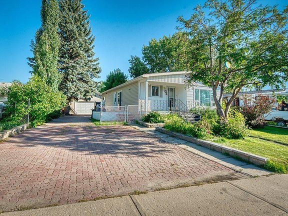 Adorable and affordable! This charming home is surrounded by lush greenery and towering trees. Ideally located just steps from Brentwood Elementary School and close to Gray’s Park & Dinosaur Sledding Hill as well as Strathmore Family Centre Arena and more. This terrific home is perfect for a first time home buyer, empty nester or investor. The inside is bright and sunny with a spacious open feel. The updated kitchen features stainless steel appliances including a gas stove and over the range microwave, popular bright white cabinetry, stylish backsplash and granite counters. The kitchen is open to the dining area with wide plank laminate flooring throughout the space. 3 bedrooms give you plenty of options for kids rooms, guest rooms or maybe a home office depending on your needs. The main bath has a good sized shower with glass door and there is also a convenient 2 pc bath for guests just off the back door where you’ll also find a stacker washer and dryer. Whether you want to use it for parking or as a workshop you’ll love the luxury of the detached heated 2 car garage which is accessed by an extended driveway providing you with plenty of parking. The nice sized yard backs onto a green space with more tall trees for shade and privacy. If you’re ready to start your home ownership journey or build your investment portfolio this great home is move in ready, Updates, Hotwater tank 2021, shingles May 2025, updated kitchen, some newer flooring, Central air 2 years old. You’re going to love living in Strathmore. Come check it out!