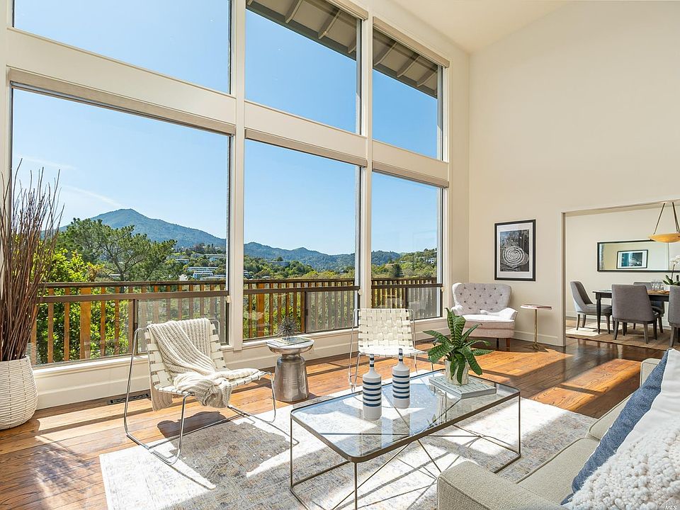 Extraordinary gated estate property on .80 acres down a long driveway with no neighbors, reduced and now one of the best values in Greenbrae. Sparkling pool off the family room, double French doors open to a huge covered patio with comfy outdoor sofas to hang out and BBQ, or soak up the sun from the giant sundeck. Either way, it gets no better to hang out here to enjoy the near perfect weather. Spectacular soaring walls of glass in the living room for some of the most incredible, wide open Mt Tam views I've seen in Marin. Remote control shades, but current owners rarely had them down as nobody looking in, just you looking out. Easy two story living with 3 Br's / 2.5 Ba's on main levels, PLUS a 4th Br and 3rd full Ba with another family room and full kitchen on ground level. This level would make for a giant 2 office workspace or ADU. Total of a whopping 3570 sq ft of living space with sunny south facing views from nearly every room. Gorgeous mix of hardwood and stone floors, 2 wood burning fireplaces, formal dining room, new carpet, cool central A/C with 3 zone HVAC, 9.9 Kw solar that is OWNED, not leased. No need to leave home, just vacation at your own resort and enjoy all that's here. Don't miss this very rare opportunity to live so close to everything yet feel so far away.