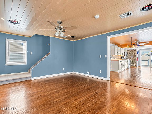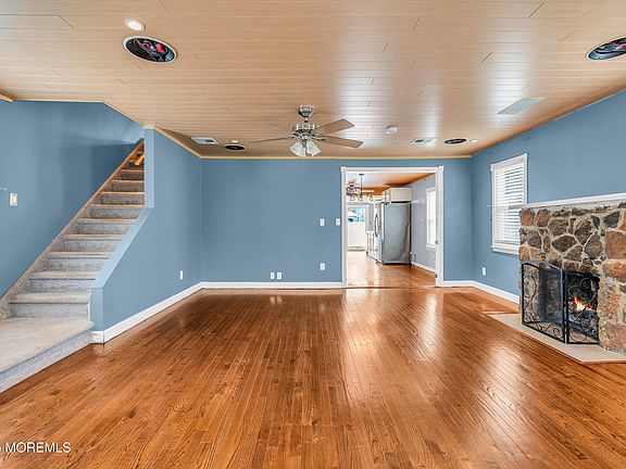 This home is packed with features that will bring you joy. It is truly a home for all seasons and all reasons. When you first walk in, you will discover the hardwood floors and the fireplace, but it doesn't end there. Look up, there is surround sound and recessed lights. Perfect for movie night. Next up is sunshine and a large kitchen with storage for everything. The sliding glass doors lead out to a deck, a fenced-in yard, and a garage. The first floor also boasts a great full bath and one more room that can be a bedroom or a bonus room. Upstairs, you will find 3 more bedrooms and a half bath. This gem is nestled in a special part of Brick that has its own Waterfront Association. Membership is optional.