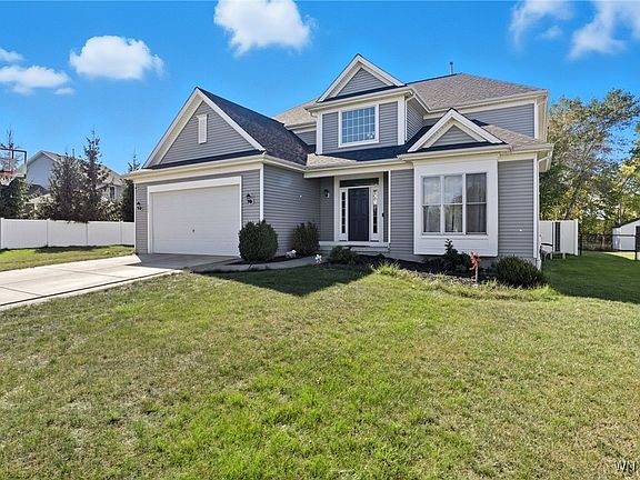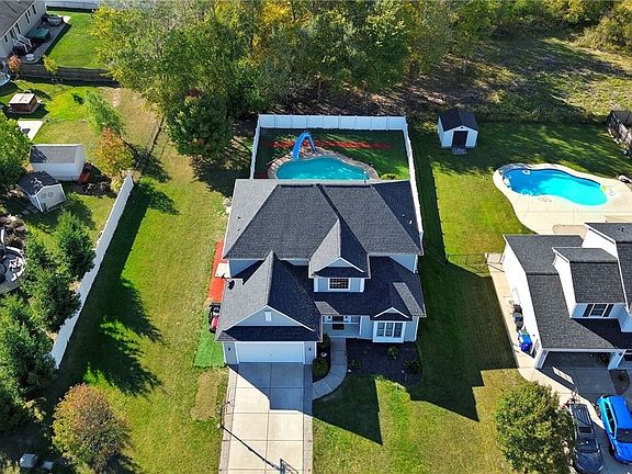 Step into this beautifully updated, Marrano built, 4-bedroom, 2.5-bath home that blends modern comfort with thoughtful design. The open floor plan features a cathedral-ceiling living room and a first-floor bedroom, perfect as a private office. The updated kitchen boasts new appliances, and convenience continues with first-floor laundry right off of the garage, making the perfect mud room! Major updates include a new roof (2022), furnace and central air (2025), tankless hot water heater (2025), and pool pump. The massive basement with a BRAND NEW egress window, is ready for drywall and finishing, offering endless possibilities. Outside, enjoy the stamped patio for outdoor entertaining & a well-maintained, heated in-ground pool! The spacious primary suite comes complete with a walk-in closet, and updates throughout make this home truly move-in ready. The property is over a third of an acre, and has additional land behind and to the left of the backyard fence! Please be aware there are cameras on the property!