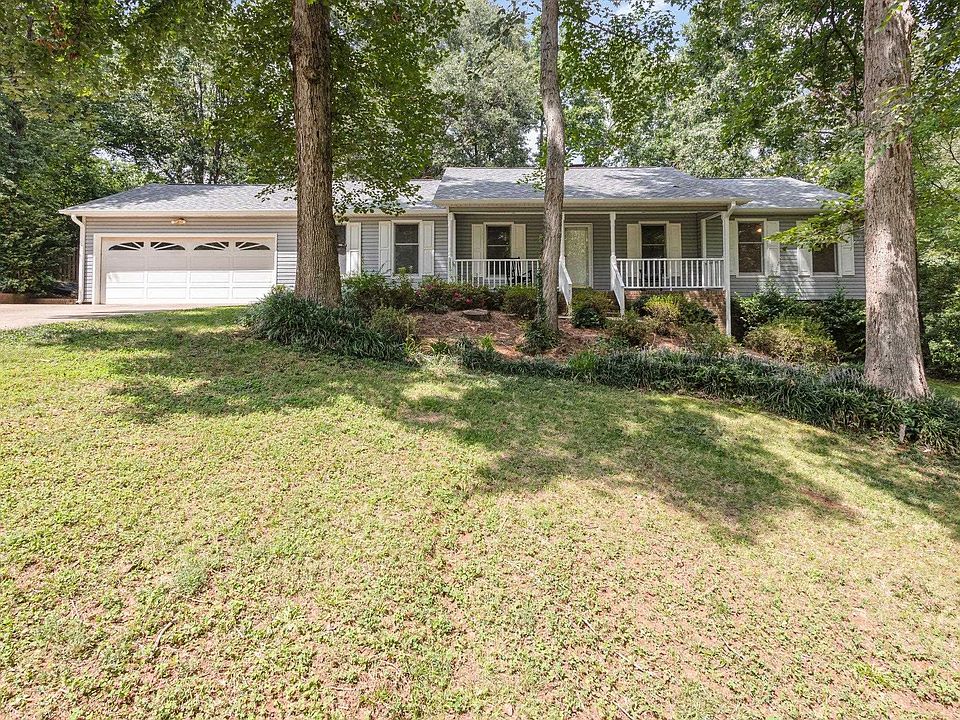 ONE LEVEL LIVING on a large .84 acre wooded lot. NEW ROOF in March 2025, FRESH PAINT, and NEW LVP FLOORING + NEW AC April 2025. Rocking chair front porch greets you upon your arrival and opens into a large living room with a gas log fireplace. The primary bedroom is to your left and offers dual vanities, shower, tub and walk-in closet. Also on this side of the house is the laundry room. To the right you find 2 bedrooms and bath. On the rear of the home the dining room overlooks the wooded back yard. The kitchen features corian counters, under thecabinet lights and leads out to the SCREENED PORCH. FENCED BACK YARD and 20X16 WORKSHOP with POWER that is home to all of your HOBBIES. Close to town and outstanding district 6 schools.