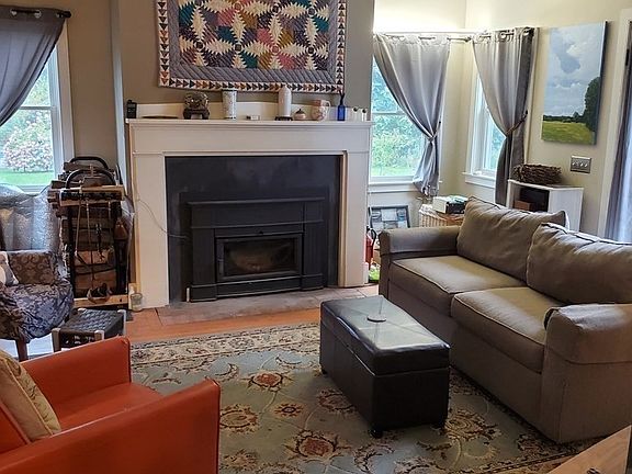 Warm and welcoming 8 room, 3-4 bedroom 1900's Village Colonial with farmhouse flair and a modern family room addition (2007). 1.5 baths. Plenty of living space with fantastic outdoor space as well. French doors open from the family room to a paver patio and fantastic perennial and vegetable garden beds in this right to farm community. New wood stove. Remodeled maple kitchen boasting repurposed blackboard slate countertops with lots of open work space.Recent stainless appliances. Separate dining room opens to patio area as well. 1st floor office or 4th bedroom. Wide pine floors throughout. 2nd level has 3 more bedrooms, laundry room and full claw-footed bath. Recent vinyl siding and Roof 2017. 200 amp electric. 24 owned solar panels. Propane gas cooking. Forced hot air heat. Off street parking 4-5 cars. Vintage charm with many recent updates. Large "L" shaped lot with frontage on 2 streets. Minutes to Rte 70, 190, 495, Rte 2.