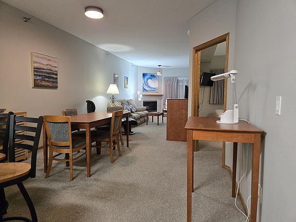 One-of-a-kind Commodore--the only unit with 2 full baths. Private master suite, enclosed bedroom with its own 2nd private bath. In-unit washer/dryer is included. Fully furnished and beautifully maintained turn-key with a complete kitchen, flat-screen TVs, fireplace, queen sofa sleeper, newer flooring, paint, drapes, and more. All on one level with 910 sq ft, larger than the other Commodores. Rarely available & highly desirable, your chance to own a piece of paradise! Enjoy gorgeous White River views from your private patio, The Cove offers indoor/outdoor pools, hot tubs, fitness center, pickleball, tennis, basketball, shops, and more. Steps to downtown Lake Geneva's beach, shopping, and dining.