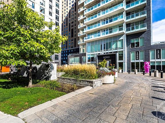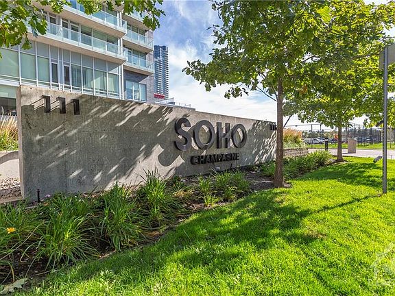 1 Bedroom PLUS den, perfect for working from home. Unit also includes an owned parking space, and storage locker. You can simply move right in to this stunning unit in the trendy SOHO Champagne building. The location is amazing, being steps From Dow's Lake, the Arboretum, Transit etc. The unit itself is bright, with floor-to-ceiling windows, and features hardwood floors throughout! The kitchen is modern with crisp white cabinetry, integrated appliances and gorgeous quartz countertops. The bedroom is separated by a chic glass sliding door. Large balcony perfect for enjoying a drink after a long day! The luxurious amenities Include Gym, Hot Tub, Party Room, Terrace, Common Patio, and Concierge Service. Living room and bedroom are virtually staged.