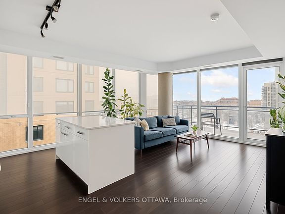 Welcome to Suite 807, a sleek and modern 2 bedroom, 2 bathroom corner suite offering 986 sq.ft. of thoughtfully designed living space in the heart of Ottawa's vibrant Little Italy. This sun-filled suite features floor-to-ceiling windows and two southeast-facing balconies, one off the open concept living and dining area and another off the spacious primary bedroom, perfect for enjoying morning light and sweeping views. The kitchen is both functional and stylish, with built-in appliances including an integrated fridge and freezer and a large island ideal for cooking, dining or entertaining. Both bedrooms are generously sized, and the suite includes two full 4-piece bathrooms, each featuring a 2-piece shower. Living here means being just steps away from vibrant Preston Street, known for its fantastic selection of Italian restaurants, cafes, bakeries, and specialty shops. Enjoy the charm of Little Italy's lively atmosphere, along with easy access to nearby parks, scenic Dows Lake, and excellent public transit options, including the O-Train. The building offers a range of premium amenities, including a fully-equipped gym, pool, hot tub, a movie room for private screenings, a conference room, and an entertainment space with a kitchen, perfect for hosting events or casual gatherings. With modern finishes throughout, this home combines comfort, convenience, and urban living at its best. A floor plan of the suite is attached for your convenience.