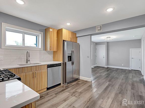 Beautiful new interior- entire unit Renovated! 3 Bedrooms, full bath, New: quartz and stainless kitchen, bath, forced hot air/central air units, water heater, windows, freshly painted interior, and new flooring. Bedroom with large walk in closet. Laundry room with designated washer and dryer and laundry locker for Apt A- Samsung front loading machines. Freshly painted grey interior and laminate flooring. Yard and driveway for first floor Apt A. Tesla charger for 1st floor Apt. Large fully fenced dedicated yard and a paved patio. It is all new. Close to Metro Park direct train to NYC, major routes, shopping and houses of worship. Great school system. Quiet neighborhood. No more than four occupants and absolutely no pets.