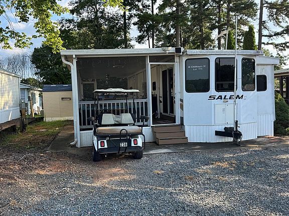 Location, Location! Please see the virtual tour of this property! This Badin Shores Resort home is directly across from the best recreation facilities Badin Shores Resort has to offer. Walk to the resort's very large pool, pickleball/Tennis courts, basketball courts, horseshoes, Volleyball net and more! Club House drive is on the way to the Badin Shores' sandy beach and fishing pier. The Marina/Launch and catch and release pond is also nearby. This 2008 Salem (large) RV has a very nice with one easy to walk around bedroom, adjacent glass door shower enclosure with a stack washer/dryer installed (something many RV/Camper homes do not have). The Kitchen has a full-sized refrigerator, an apartment sized full height (Not Camper style) gas range, built-in Microwave and seated bar. This home feels very spacious, and best of all includes a 2019 fully covered, full length screened-in porch. This home has a good front parking area and a nice vinyl storage building. For entertainment, cable is not included but available, but this home already includes an outdoor digital TV antenna. Move In Ready! Badin Shores is Like no other place, its setting within the Uwharrie Mountains/ Badin Lake shoreline, it is a stunningly beautiful setting for your dream resort Lake home.