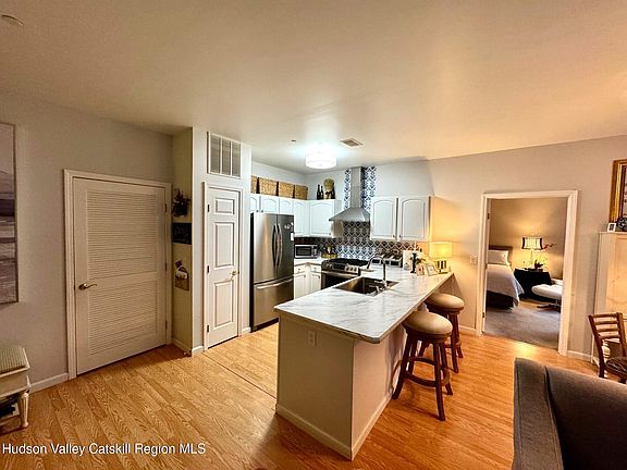 A Rare Opportunity at the Commons at Saugerties! Two bedroom, two bath ground floor condo located at the back corner of building #1. Warm and inviting open floor plan with living room, dining and kitchen with updated appliances. Primary bedroom with en suite bath and walk-in closet with shelving. Fiber Optic Internet available in the community. Monthly HOA covers landscaping, snow plowing, trash pickup, exterior building maintenance and use of clubhouse/fitness room. Conveniently located between Saugerties and Kingston. Minutes to the Rhinecliff Bridge.