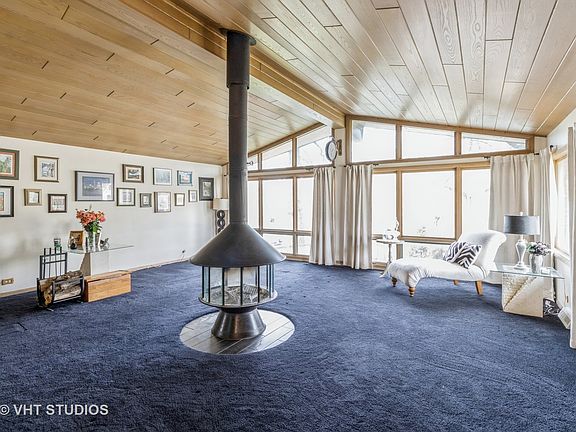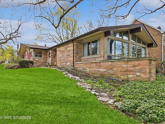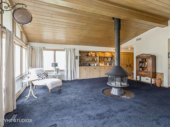 Sprawling stone ranch in Elgin's GOLD COAST! 3246 sqft which includes the finished english basement. Contemporary flair greets you as you enter the soaring great room with built-in bookcases & cathedral tongue & groove ceiling with a wall of windows. All centered around the freestanding wood burning stove. Eat-in Kitchen features plenty of white cabinets, china cabinet, SS appliances & quartz counter with access to deck. Spacious Master bedroom with private bath & hardwood floors. The family room in the finished lower level gives you even more room to spread out. Many newer updates include Furnace/AC, Roof (tear off), 6 panel doors, upgraded electric & more. 2.5 car heated garage & a stone walkway to the backyard shed. Beautiful setting with towering trees & Koi pond.
