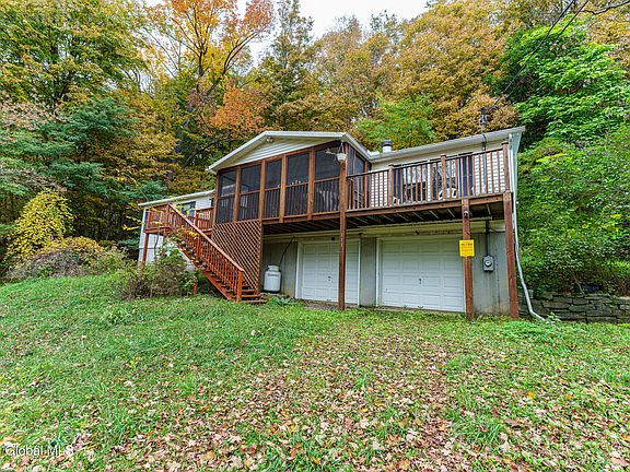 Fantastic location! This quaint home is privately tucked away on 1.8 acres at the end of a dead-end street in the village of Sharon Springs. 3 bedrooms, 2 full baths with a spacious layout and two fireplaces. Enjoy the privacy on your huge back deck or sip coffee on the screened-in front porch. Full basement with a 2 car garage.