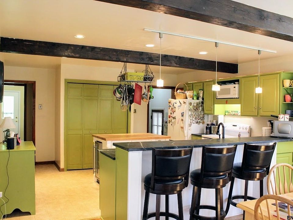 PRICE REDUCED!This quaint Cape in a quiet Scotia neighborhood is perfect for a young family. It features newly remodeled open kitchen with soapstone counters & sink, custom island & large bar seating area & dining area.. French doors lead to recently enlarged deck w/ Trex railings, landscape lighting, retractable awning overlooking pvt backyd & garden. H/w floors on main floor, 1st fl ldry, 3 bdrms 2 full bths. New siding, windows & roof 2010. Walking distance of all Scotia schools.