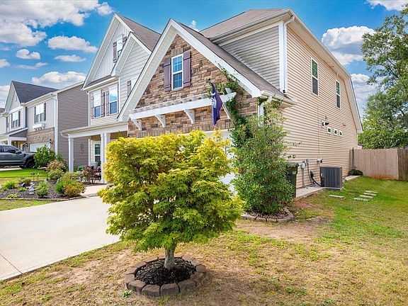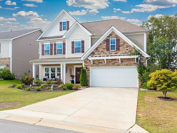 Welcome to 111 Crisp Cameo Ct. in Greer, located in the Braeburn Orchard. This 5-year-old home is going to really impress; it features way more upgrades than your average new build. Boasting stone accents with vertical and horizontal vinyl siding and an eyebrow pergola to give it that final touch to the curb appeal. The generous foyer with a beautiful chandelier and double coat closet gives you an impressive entrance. The dining room is stunning with a tall coffered ceiling and three windows to offer a bright and cheerful dining experience. The staircase to the second level features upgraded railings and hardwood steps. Heading straight down the hall, you do not want to miss the extra-large walk-in pantry. This is in addition to the one in the kitchen; it's huge and even goes under the staircase for additional storage. Your expectations will continue to be exceeded with luxury vinyl floors, which cover the huge great room with a gas log fireplace that features an upgraded mantle and ceiling fan, a perfect venue for the whole family on movie night. The kitchen is a cook's dream, with a huge quartz island and tons of cabinets and drawers for all your cooking supplies and dishes. Yes, the stove and oven are both gas, and electric is accessible if you prefer. The kitchen also features another pantry closet. The The breakfast room is just off the kitchen, a great place to grab a quick sandwich. You will love the owner's suite, a large room with a tray ceiling with a ceiling fan. The owner's bath has a tiled shower with a garden tub and a separate water closet. The extra-large walk-in closet is perfect with room to spare. Upstairs you will find 4 bedrooms and a huge play/media room or even a 6th bedroom. There are also two full baths. The design was well thought out and keeps all the kids upstairs in a space with plenty of room to spread out; all bedrooms have double closets, and two have walk-in closets, one with extra crawl attic storage on both sides. Now to the best part and my favorite: you are going to love the backyard. The size of the yard is .17 acres, perfect for families who want a decent-sized yard but not so big that it consumes their free time with excessive grass cutting and maintenance. The owners turned the covered porch into a cozy screened porch and expanded the patio to 40 X 16. They also added additional concrete sidewalks around the home. The backyard has a privacy fence on the sides and is open on the back to be able to enjoy the wooded lot behind the home, which, by the way, will never be built on; it is common space, so your privacy is secure. I wanted to mention a few other features: the home had upgraded lighting and ceiling fans, a tankless gas water heater, public water and sewer, and garbage pickup included. There is an in-ground irrigation system in the front and back, which is super convenient. The home is close to the Greenville International Airport, BMW, and Michelin. Simpsonville, Five Forks, is a short trip for all your shopping and dining needs, and for the kids, Tyger River Park is just down the road, a place for them to play and have fun with others. This place is really awesome, and I think you will agree. Be sure to take a look at the interactive floor plan to see if the floor plan works for you and your family. There is also a 3-D walk-through for the home as well. Please give me a call to set up a private showing; I would be more than happy to give you a tour and discuss options to purchase. This is an AWESOME opportunity.