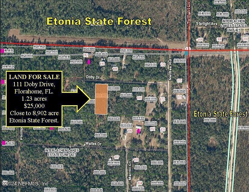 A peaceful 1.23-acre tract, zoned for AG use, awaits your dream home or mobile home. Situated near the breathtaking 8,000-acre Etonia State Forest, this property offers a serene environment for outdoor recreation and nature exploration. Take a visit to the property and visualize your future home. The real estate sign is placed in a rough approximation of the lot's location. For precise property boundaries, we suggest obtaining a survey and conducting due diligence with the county to confirm the property's suitability for development. Don't miss this opportunity to live in close proximity to the beauty of Etonia State Forest.