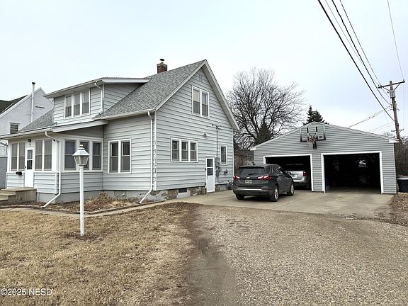 Move in ready home with 4 bedrooms and 1.5 bathrooms. 3 bedrooms are upstairs with a full bath and laundry. The main level has a large dining space, 2 living rooms, and a half bath with high ceilings throughout and an enclosed porch. The lower level has a large 4th bedroom with egress window. You will be pleased to find a newer furnace and water heater, steel siding, water softener and drinking water system. The detached double garage is oversized.