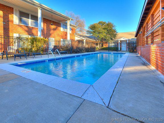 This 1st floor, ONE-LEVEL unit boasts natural brick walls in living room and bedrooms. New light fixtures and ceiling fans. Very open with tiled floors throughout. Bright kitchen w/ lots of storage. Private patio. Just across from Riverside's QT Plaza in the heart of Brookside. Near the shopping (Trader Joe's and Whole Foods), restaurants and activities that Brookside has to offer. Beautiful community pool. Only 9 units total in this gated community. Includes covered parking in front of unit and small storage closet in rear of unit. $300 HOA covers EVERYTHING except electric.