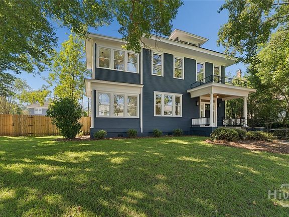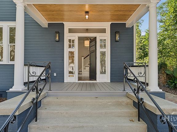 Situated in the heart of Ardsley Park, this distinguished studs-out renovation blends historic charm w/modern sophistication on an expansive lot. Thoughtfully designed throughout, the home offers five bedrooms, three full & two half baths, & open living & dining spaces ideal for entertaining. The main kitchen features Cafe smart appliances & is complemented by a separate chef's kitchen w/dual dishwashers-perfect for hosting or catering. Additional highlights include a temperature-controlled wine room, sunroom, library nook, & custom dog wash. The primary suite is a serene retreat w/a spa-inspired bath, dual vanities, & a custom built-in closet. Upstairs bedrooms offer generous light & space, while the finished attic provides flexibility for a playroom, media room, or 6th bedroom. A carriage house apartment above the detached garage adds a kitchen & bath for guests or rental potential. Every major system is new, ensuring modern comfort & efficiency in timeless Savannah style.