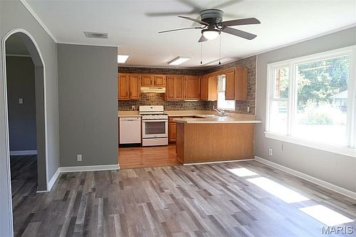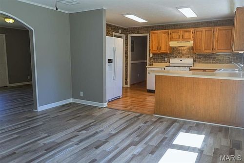 Move-In Ready Brick Ranch on large level lot. 3 bedrooms, 2 bathrooms. The kitchen is equipped with a gas 5-burner range, refrigerator, and dishwasher. There is a lot of counter space, perfect for prepping meals and a breakfast bar. The dining room is big enough for large family meals or entertaining friends. The living room is spacious enough for everyone to spread out and relax. The primary bedroom will easily accommodate a king sized bed. The laundry room has two cedar lined closets. The mud room is perfect for removing shoes so you don't track a mess through he house. The large, level lot has established plantings and large shade trees. Located near the elementary school. Only a short drive into New Madrid and easy access to HWY 55. The tenant pays all utilities. Credit and background check are required. The owner would also consider a lease to own with acceptable credit and down payment.