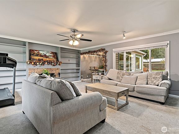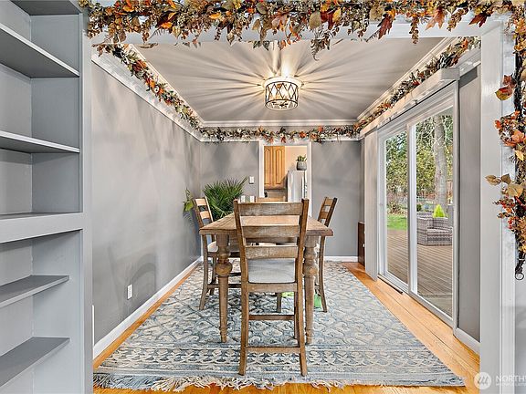 Welcome home to this charming and cozy 2-bedroom, 2-bath Centralia retreat! Step inside to a bright, spacious living room with a wood-burning fireplace and built-in shelves—perfect for curling up on cool evenings. The dining area opens to a sunny deck, and the updated kitchen features soft-close cabinets and granite countertops. The primary suite includes a ¾ bath, walk-in closet, and extra storage. There is a spacious 2nd bedroom, an updated full bath, a laundry room with a pantry & extra storage, plus a one-car garage. Enjoy the fully fenced backyard with a wrap-around deck, patio with outdoor fireplace, storage shed, and beautiful landscaping with walnut, pear, and magnolia trees surrounded by blooming roses and rhododendrons.