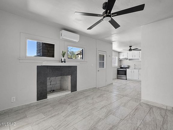 Covered patioBrick fireplaceBright open-concept layoutBrand-new mini-splitsNew tile flooring