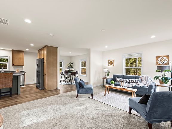 Welcome to this stylish new three-bedroom, two-bath home! Step into a spacious open-plan living room that flows seamlessly into the dining area and eat-in kitchen, which is equipped with brand-new sleek stainless steel appliances—perfect for everyday meals or entertaining. The primary bedroom features a private en-suite, offering a serene retreat at the end of your day. Nestled in a secluded community, you'll enjoy exclusive access to a clubhouse, park, and private Puget Sound boat launch. This property blends modern design, functionality, and a vibrant neighborhood ambiance.