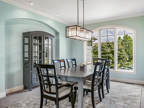 This gorgeous 5850 sq.ft. home is nestled on a quiet cul-de-sac in the coveted Twin Eagles subdivision. Enter the light filled living room with large windows and custom coffered ceilings. The open, formal dining room offers ample space to entertain family and friends. The chef's kitchen boasts custom Grabill cabinetry, a massive island, two built in ovens, gas stovetop, a walk-in pantry and a hearth room with a gas fireplace. The master en suite is very roomy with a beautiful bath where you can enjoy the jet tub, surrounded by travertine tile, large tiled shower, double vanities and a huge master closet. There are 3 more large bedrooms upstairs with a jack and jill bath and a second full bath. In addition, the third bedroom has the cutest bonus playroom. The sizable basement has a wet bar, guest bedroom, workshop, rec room and full bath. Enjoy the beautiful landscape and mature trees from the recently painted deck. Upgrades include, new roof, two new A/C units, upgraded security system, invisible fence, smart thermostat, quiet exhaust fans in bathrooms and Sonos compatible speaker system. The 3- car garage allows access to the basement, with stairs leading to a huge storage area and tornado room. This lovely home has built-ins and an amazing amount of storage. Relax this summer at the neighborhood pool and tennis courts!