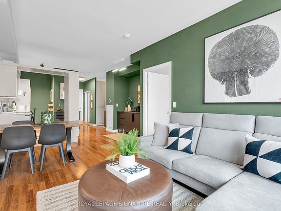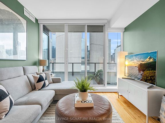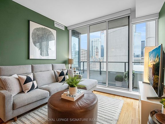 Discover elevated downtown living in this beautifully updated 1+1 bedroom, 2-bath suite with stunning south-facing views. Boasting 779 sq ft of thoughtfully designed space, this sun-drenched unit features engineered hardwood floors throughout, a sleek modern kitchen with stainless steel appliances, full oven, and quartz countertops, plus two recently renovated spa-like bathrooms with new modern vanities. Wake up to iconic CN Tower views from the generous-sized primary bedroom w/ a stunning ensuite. The spacious den, complete with custom closets, offers incredible versatility and can easily be converted into a second bedroom, home office, or nursery perfect for your evolving lifestyle. Step out onto the balcony to soak in the stunning city views or unwind in your open-concept living space flooded with natural light. Your new home will include a prime parking spot on P3, a large 6' x 6' locker conveniently located nearby, and an owned, upgraded heat pump (2024). Located in a well-managed building with a newly updated 24-hour concierge and security desk (2024), offering seamless package reception and secure delivery handling. Residents enjoy access to top-tier amenities: a pool, jacuzzi, sauna, updated gym (2025), and a stylish multi-purpose room with kitchen, boardroom, and two-level entertaining space. EV charging is available for installation at your parking spot. Perfectly positioned in one of Torontos most dynamic and connected neighbourhoods, this location offers a 99 Walk Score and 100 Transit Score. You're surrounded by Torontos top hospitals including Mount Sinai, Toronto General, SickKids, and St. Michaels. Directly next to Toronto City Hall and the Eaton Centre, and with a full-service Longos at the bottom of the building, every convenience is at your doorstep. Experience the best of city living with acclaimed restaurants, cafes, and attractions just around the corner.