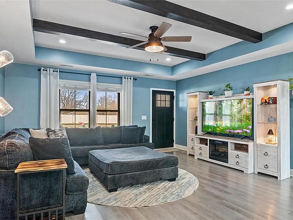 This three year old home is truly remarkable and full of custom features from high quality craftsmanship. Outside is a covered front porch, a privacy fenced in yard, pergola perfect for a fire ring, deck, plus two car attached garage. Inside you'll find wooden beam accents, stunning light fixtures, and an additional vaulted ceiling in the primary bedroom. In the primary bedroom you'll also find double closets, and a bathroom from a dream with tile floors, a soaking tub, custom tile walk in shower, and a double vanity. This home has a wonderful floor plan for functionality including double linen closets & a pantry closet, walk in closets, plus a place to kickoff shoes when you enter from your garage. Enjoy all of the city benefits including Thomas W. Kelly Highschool in this nice one entrance neighborhood.