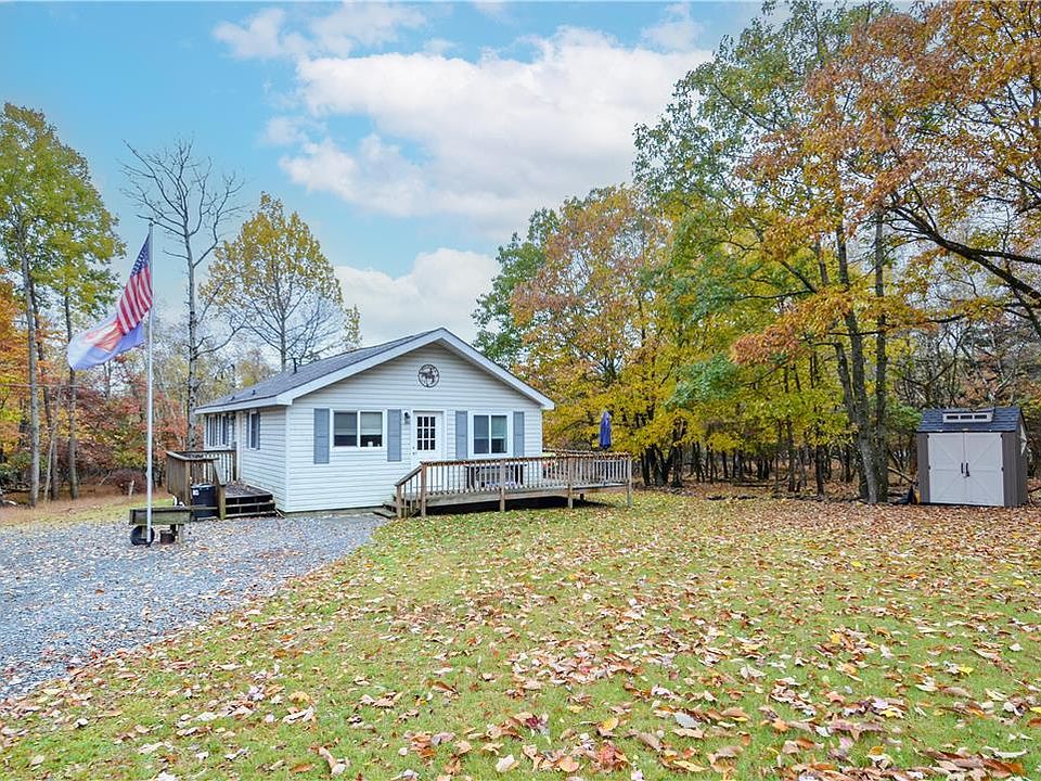 Experience the perfect blend of comfort and convenience in this move in ready, 3 bedroom, 1 bath ranch home, situated on an expansive 1.1-acre lot. Set within Indian Mountain Lakes Community that permits short-term rentals, this property represents your entry into a world of relaxation, recreation, and investment potential. Step into a sunlit and welcoming open-concept living, kitchen, and dining area, thoughtfully designed for entertaining guests, or simply savoring your daily life. The kitchen boasts a tile backsplash, newer stainless steel appliances and a dining area. Down the hall, the bedrooms include roomy closets and a full shared hall bath. This home has also been updated with new windows, flooring, and ceiling fans in every room. Embrace outdoor living at its best with a generously-sized deck and a new shed. These additions are perfect for hosting BBQs, storing your outdoor gear, or simply basking in the serene surroundings. You're just a leisurely stroll away from the community pool and tennis courts. Enjoy boundless entertainment and relaxation right at your doorstep. 24-hour guarded gate, five lakes, clubhouse, playground, and maintained roads for easy access and peace of mind. Close to the PA Turnpike and Interstate 80, as well as ski areas, Pocono Raceway and many shopping outlets. Whether this becomes your primary residence, a weekend retreat, or a savvy investment opportunity, you'll discover this home is fully equipped to meet your needs.